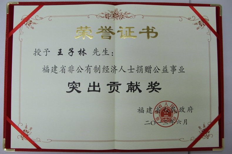 福建省非公有制經(jīng)濟(jì)人士捐贈(zèng)公益事業(yè)突出貢獻(xiàn)獎(jiǎng)