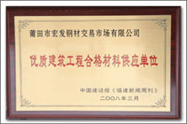 2005年04月 莆田市宏發(fā)鋼材交易市場(chǎng)有限公司被評(píng)為第三屆“全國(guó)誠(chéng)信單位光榮榜”上榜榮譽(yù)單位