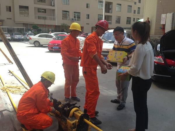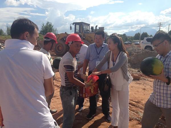 7月20日,集團人力資源中心總監吳高忠、總裁辦主任朱琳,在上杭中陽總經理向榮、副總經理郭明亮等的陪同下,先后至客服營業廳、儲配站及紫金路等施工項目工地開展高溫慰問,為在高溫期間戶外作業的一線工作人員送去清涼與關懷,并提醒他們做好高溫防護措施,注意勞逸結合。