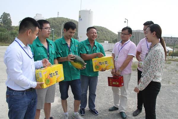 7月19日,集團人力資源中心總監吳高忠、總裁辦主任朱琳,在南豐曠遠能源總經理楊永剛等的陪同下,先后至南豐富溪場站、客服營業廳開展高溫慰問活動,為一線工作人員送去飲料、西瓜及藥品等,并走訪工地,詳細了解富溪場站工程建設進度,同時,在現場囑咐一線員工務必做好防暑降溫工作。