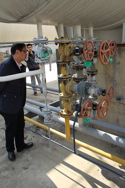 在安全檢查過程中共發(fā)現(xiàn)以下幾處問題,分別為:鯉南撬裝站閥門法蘭片防腐劑脫落,且出現(xiàn)較多的螺栓未打黃油;氣源廠進(jìn)液閥開關(guān)、殘夜安全閥、消防栓、LPG罐區(qū)內(nèi)開關(guān)螺栓、LNG立罐差壓變送、LPG槽車裝卸等螺栓沒磨,未打黃油、空調(diào)電風(fēng)扇等閑置資產(chǎn)需出售處理;涵西加氣站干燥器等鋁箔未包;閥門手輪缺失,需采購(gòu)安裝;黃石門站和荔園站相較無特別突出的問題。王董在現(xiàn)場(chǎng)對(duì)以上存在的問題及不足之處提出了批評(píng),并限定其在規(guī)定時(shí)間內(nèi)及時(shí)進(jìn)行整改。當(dāng)天下午四時(shí)許,王董一行結(jié)束年前安全檢查之行。