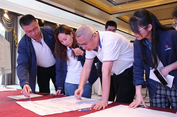 第二日,主講團(tuán)隊(duì)意識(shí)、溝通、信任的建立,通過(guò)拓展訓(xùn)練,讓成員們搭建信任橋梁;通過(guò)關(guān)系模型,引導(dǎo)成員如何化解沖突關(guān)系,與下屬建立信任關(guān)系。