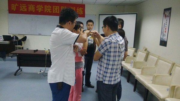 在開課前,學(xué)員們首先將特地為本次課程所制作的“曠遠(yuǎn)商學(xué)院團(tuán)隊(duì)訓(xùn)練”橫幅掛在了培訓(xùn)室內(nèi),并清空培訓(xùn)室內(nèi)的桌子,只留下椅子,將由教務(wù)組準(zhǔn)備的相關(guān)道具一一布置到位后,隨即進(jìn)入團(tuán)隊(duì)訓(xùn)練課程。
