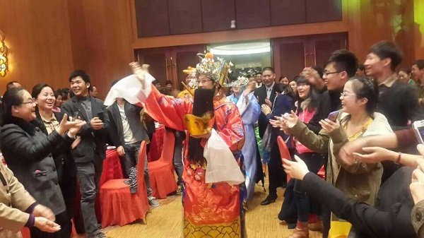 迎春晚會以集團高管變裝登臺開場,高管們一改往日工作中的嚴謹形象,或反串,或搞笑,一登場便炒熱了現場氣氛,隨后,集團董事長王子林先生以財神爺形象,手捧金元寶出現在會場,從進口處開始一路揮灑糖果與紅包,現場頓時一片沸騰。
