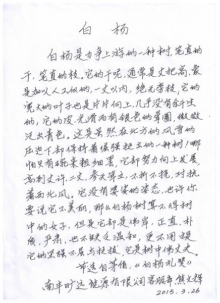 為營造良好的學習氛圍,提高員工的書寫質量,增強員工綜合素質,提升企業文化品位,自2015年3月20日起,集團第一屆書法比賽正式啟動。3月20日至3月30日報名期間,共收到44個參賽作品,經初評后,共有25個作品入選并進入OA評選。截至4月10日,書法比賽完成OA票選,比賽最終結果以初評成績及OA票選為準。為確保比賽真實有效,4月13日至4月16日期間,集團總裁辦對入選參賽者進行了現場、視頻書寫確認。