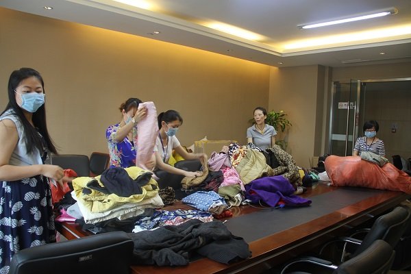 作為本次捐贈活動的主場,9月16日,在集團各公司行政人員的配合下,上千件衣物在集團9樓會議室進行整理并打包裝箱。9月17日下午,在工作人員的幫助下,近20箱衣物被送往中國郵政速遞公司,辦理相關郵寄手續后,一并寄往甘肅。