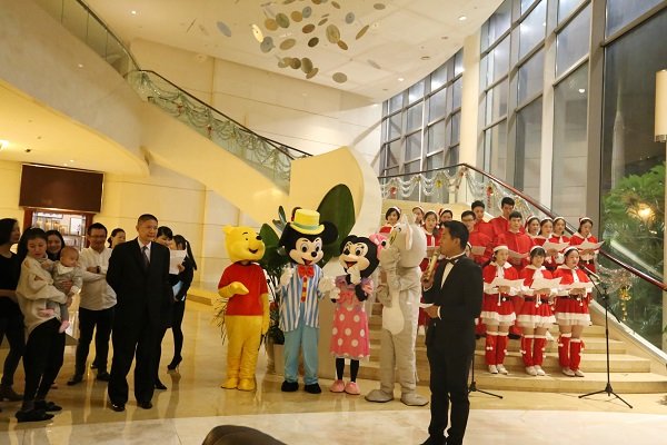 12月11日18:00時(shí),在酒店來賓們的見證下,曠遠(yuǎn)錦江國際酒店總經(jīng)理仝暉先生宣布了“圣誕亮燈儀式”的開啟。步入酒店,隨處彌漫著濃濃的圣誕氣氛。身穿圣誕服裝的酒店員工唱詩班演唱經(jīng)典圣誕頌歌,優(yōu)美的歌聲將整個(gè)大堂的氛圍烘托得美妙而神圣,期間更有夢幻的迪斯尼萌物盛裝出席,迎接賓客的到來!