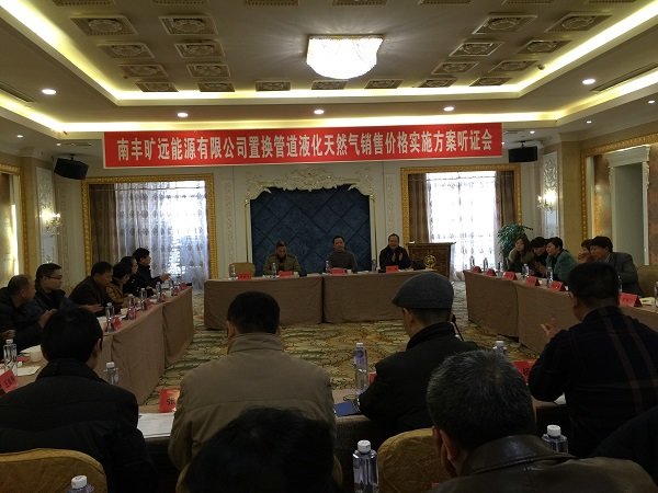 2015年12月29日上午,備受社會各界關注的南豐縣天然氣銷售價格實施方案聽證會在南豐國安賓館如期舉行,市發改委、縣發改委相關領導一行親臨現場,南豐曠遠能源作為經營者代表參與了此次聽證會。