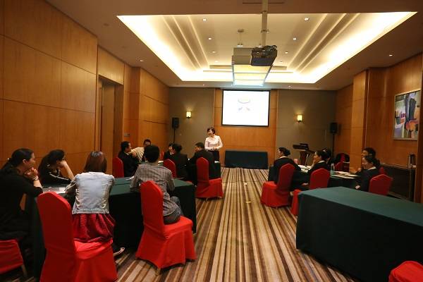 2016年4月28日,曠遠商學院酒店管理專業班在酒店泰山廳如期開展4月份培訓課程《TTT》(TTT,英文短語Training the Trainer to Train的縮寫,意為培訓培訓師。一般情況下,它是通用企業管理培訓領域的職業培訓師、企業內訓師的職業技能和職業素質訓練課程)。本次課程的主要內容有:從培訓到培養之待客之道、待人之道以及高效培訓員培訓。培訓主講酒店行政人事總監張芙蓉以分組討論“培訓”與“培養”的區別開始本次課程,第一時間調動學員的積極性。培訓過程中,張總監不時地應用互動游戲、情景演練,形象生動地分析了待客之道的五個服務技能、待人之道的六大方式、如何成為一名高效培訓員。在講解待客之道之察言觀色的重要性時,張總監分別請了6名學員,每2人一組,每個小組的其中一名成員根據紙條上提示的情景進行角色表演,而另外一名成員則根據自己對同組成員的表演觀察去判斷紙條上的情景并提供最佳的服務。通過這種特殊的情景表演,學員不但直觀地體驗到察言觀色的重要性,而且激發了發散思維,大大提高培訓效果。