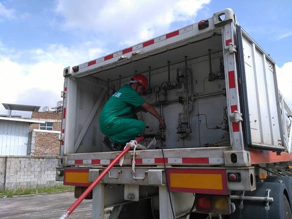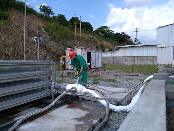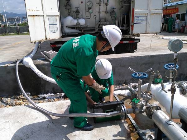 “安全責任重于泰山。忽視安全抓生產是火中取栗,脫離安全注求效益如水中撈月”。2016年6月21日9點30分左右,鯉南站值班人員在巡查時發現,LNG槽車出液管連接氣化器進液處法蘭墊片老化脆裂,產生大量LNG泄露,立即報告站長林建峰,林建峰趕至現場,判定需暫停LNG氣化供氣切換CNG供應以保證城區安全供氣和場站安全后,立即組織值班人員按照操作要求關閉槽車出液閥門及氣化器進液管閥門,并實施LNG/CNG切換,用CNG進行供氣。待LNG出液管段內LNG充分放散,管內無壓力,出液軟管溫度升至常溫后,周圍環境可燃氣體檢測符合要求后進行搶修。由應急總指揮安全運營部經理張躍章檢查搶修情況,確認完好,現場指揮下達恢復通氣指令。