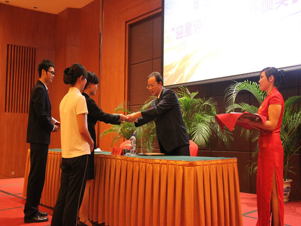 酒店總經(jīng)理親自為獲獎?wù)哳C獎