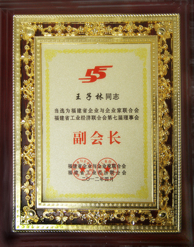 王子林董事長當選為福建省企業與企業家聯合會福建省工業經濟聯合會第七屆理事會副會長