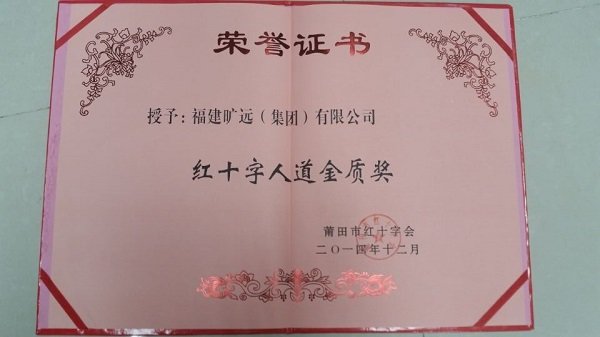 曠遠集團獲莆田市紅十字會授予“紅十字人道金質獎”榮譽稱號
