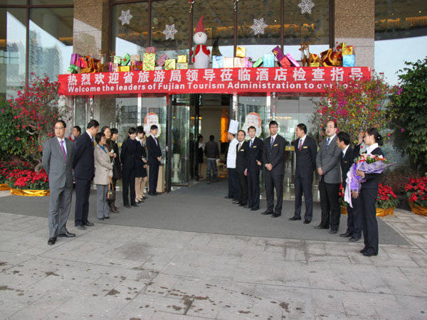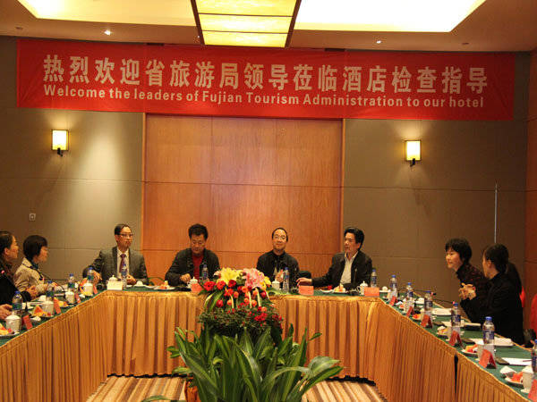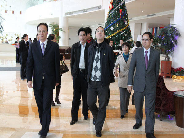 2011年12月29日,省旅游局陳副局長一行在我司有關領導的陪同下蒞臨酒店進行“星評”檢查指導工作。我集團王子林董事長和酒店管劍清總經理等高管親自到酒店門口歡迎檢查組領導的到來,并全程陪同了此次檢查。