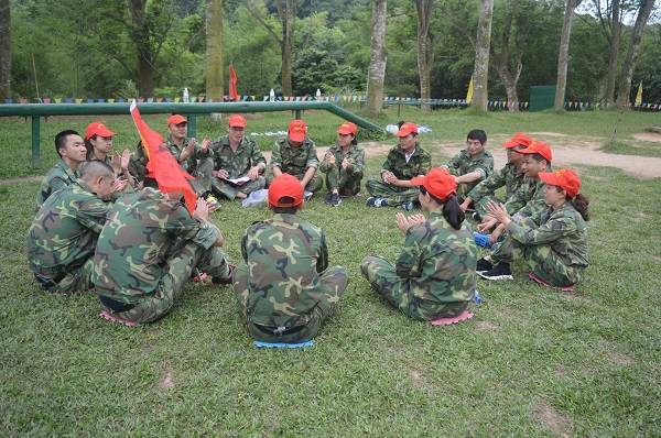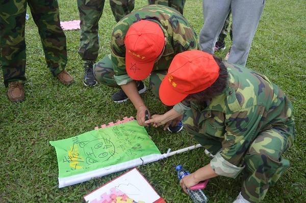 五月的陽光雖已釋放出它火熱的激情,但高溫的天氣卻影響不了曠遠人的熱情。在教練明確了訓練營營規后,伙伴們紛紛換上了英姿颯爽的迷彩服開啟了他們的拓展之旅。教練首先將全體人員隨機分成了4個小組,隨后開展了團隊建設,每個小組選舉出正副隊長并由隊長帶領組建隊名、隊呼、隊標、隊歌以及logo等,各“戰斗小組”已然準備好進入“戰斗”狀態。