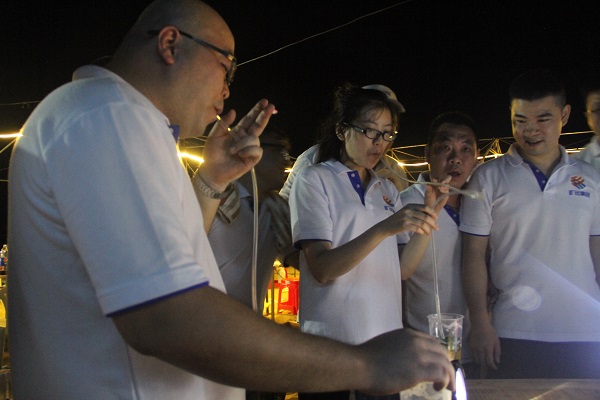 滑沙比賽結束后,所有成員欣賞著海邊的日落與晚霞,并開始著手生火、備材,準備晚餐。其中,海神隊在生火項目中以明顯的優勢,快于其他隊伍首先烤起了食材。每隊隊員們一邊動手燒烤,一邊準備食材,場面好不熱鬧。期間,開懷暢飲、誰是大胃王等趣味比拼,為晚餐增添了諸多歡笑。在合唱的歌聲中,當天活動圓滿結束。