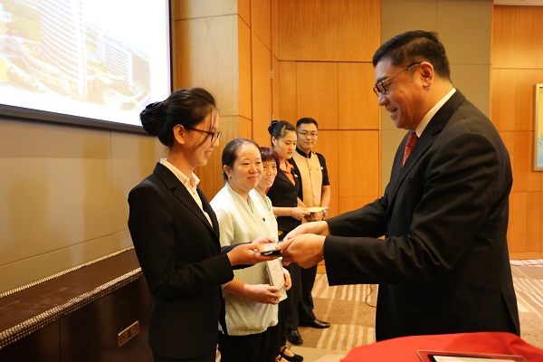 大會首先由酒店總經理王亮發表講話。王總對酒店各位同事的努力付出給予肯定,并提到了優秀酒店人的專業素養與職業情懷,同事們受益匪淺。緊接著大會依次對優秀員工提名獎、優秀員工進行表彰頒獎,他們分別獲得了酒店提供的西餐廳自助晚餐券2張及總經理親筆提名表揚信一封、自助晚餐券2張,現金獎300元和總經理親筆簽名獎牌一塊。隨后,優秀員工代表袁昭陽、鄭琳琳分享獲獎感言。鄭琳琳表示,一名優秀的酒店人應始終為客人提供優質的服務,滿意+驚喜的服務,讓賓客產生賓至如歸之感。袁昭陽說,進入酒店工作后,方知做好酒店服務其實是一門藝術,需要掌握多種技能,而非以前所認為酒店行業就是“低人一等的”服務行業,未來會多學習,快進步,在最短的時間內成長為一名更優秀的酒店人。