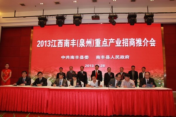2013年10月28日,在泉州市晉江榮譽國際酒店召開“2013江西南豐(泉州)重點產業招商推介會”上,福建曠遠集團副總裁姜升科代表曠遠能源股份有限公司與與江西南豐縣人民政府達成建設南豐縣共識,簽訂《南豐縣天然氣工程項目招商引資協議書》,能源事業部副總經理蘭書彬等出席了會議。