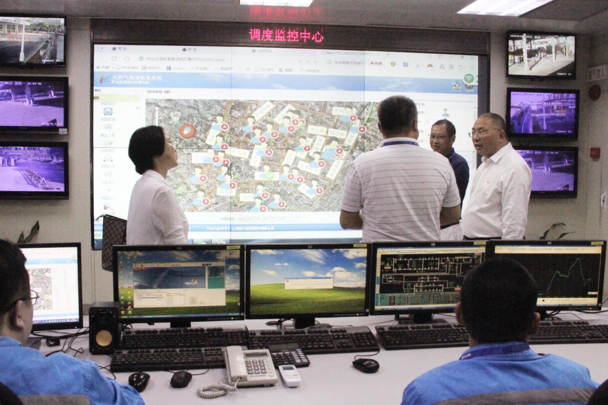 陳志強副市長一行參觀了曠遠能源調度監控中心,并現場聽取了能源總裁向榮匯報我司關于燃氣安全運營、掃黑除惡專項斗爭等工作情況后,給予充分肯定,同時提出要進一步落實燃氣企業主體責任,規范合法經營;加強與政府部門的配合協作,保持信息互通共享;嚴格按照掃黑除惡專項斗爭工作要求,共同營造“有黑掃黑”的“掃黑除惡”濃厚氛圍。