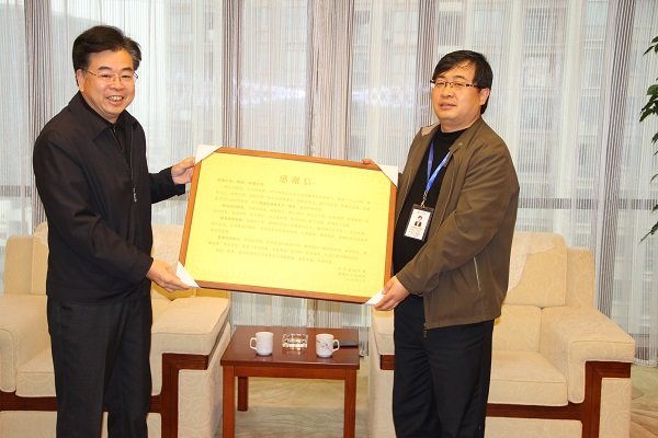 2014年1月26日上午,莆田市荔城區人大主任謝珍裕代表區政府到訪福建曠遠(集團)有限公司,親自授予集團“荔城區納稅大戶一等獎”榮譽,并致以感謝信。曠遠集團副總裁姜升科出席接待并代表集團接受該榮譽。