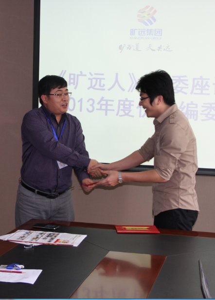 會(huì)議最后,針對(duì)在2013年度期刊建設(shè)中,表現(xiàn)較為突出的編委進(jìn)行了表彰。其中,來(lái)自曠遠(yuǎn)能源的謝力耘榮獲了“2013年度優(yōu)秀編委”稱號(hào),來(lái)自曠遠(yuǎn)房地產(chǎn)的曾明月榮獲了“2013年度企業(yè)活動(dòng)活躍分子”,副總裁姜升科先生分別為其頒發(fā)了證書(shū)及獎(jiǎng)金,并表示祝賀。