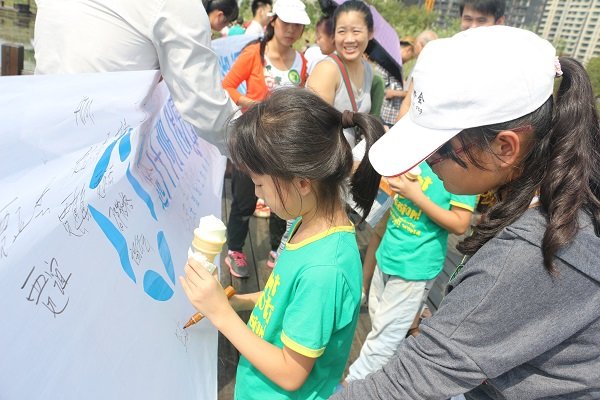 10月4日的啟動儀式上,為了更好地保護洋湖濕地環境,曠遠集團洋湖18克拉特別召集一些游客及部分極具熱心的學生,曠遠集團洋湖18克拉員工,成立洋湖濕地保護志愿者義工隊,深入洋湖濕地,動員每個人的力量,呼吁大家關注環保,為愛護洋湖濕地、保護湘江母親河而努力。首先,大家在“愛護洋湖濕地,保護湘江母親河”的橫幅上鄭重地簽上了自己的名字,該橫幅長度為94.8米,意寓湘江的總長度為948公里。然后,志愿者在曠遠集團洋湖18克拉項目營銷部總監劉家佳的帶領下進行環保宣誓:“我們生活在洋湖濕地,愛護洋湖濕地是我們義不容辭的責任;我們是湘江的兒女,保護湘江是我們的職責。為了讓湘江母親河的水更清、景更美,我們要從自己做起,從身邊做起,以自己的實際行動來愛護她、保護她!”10月4日的啟動儀式上,據環保愛心企業的代表——曠遠集團洋湖18克拉項目營銷部總監劉家佳介紹,曠遠•洋湖18克拉還將開展“綠色環保小使者”評選活動,并將展示他們制作的廢舊物品DIY環保作品。據活動負責人透露,啟動儀式后,2014曠遠•洋湖18 克拉“愛護洋湖濕地,保護湘江母親河”萬人簽名大型環保公益活動將在更大范圍內推展開來,以“1-3-7”的環保理念,即一個青少年兒童影響到父母三口之家,再傳播至爺爺奶奶三代人,帶動全社會以實際行動參與到環保事業的隊伍,并投入到“愛護洋湖濕地,保護湘江母親河”的活動中來,實現愛護洋湖濕地,保護湘江母親河,支持環保事業從小做起、從我做起、從現在做起的目的。