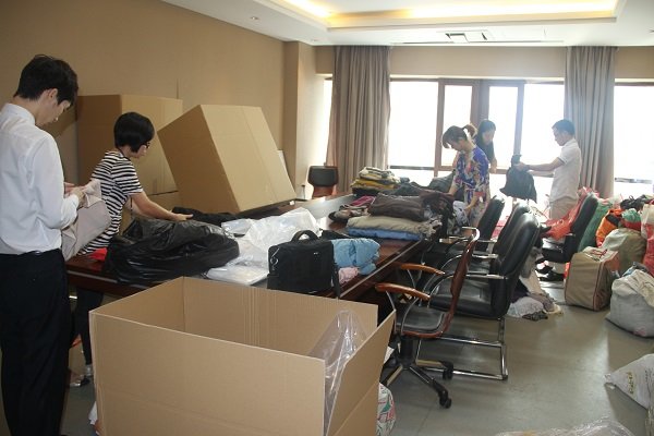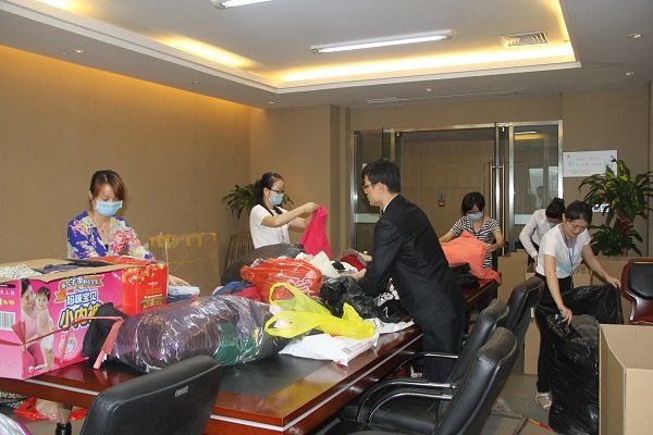 作為本次捐贈活動的主場,9月16日,在集團各公司行政人員的配合下,上千件衣物在集團9樓會議室進行整理并打包裝箱。9月17日下午,在工作人員的幫助下,近20箱衣物被送往中國郵政速遞公司,辦理相關郵寄手續后,一并寄往甘肅。