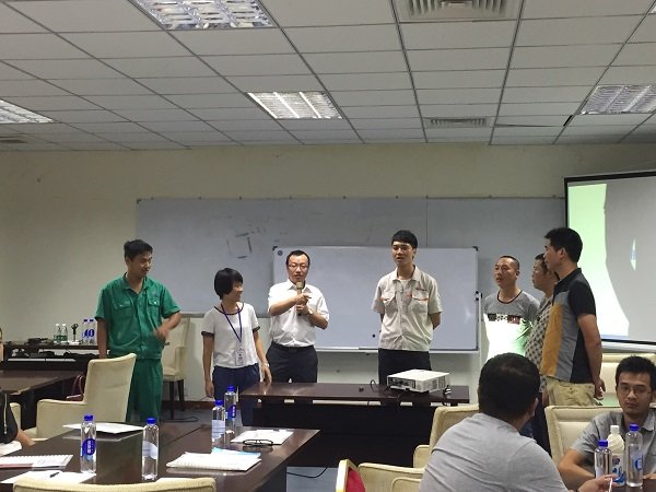 當天下午,以市場開發情景模擬為主題的課程帶動了全體學員的應變思維,葉總邀請了曠遠能源股份有限公司副總經理胡惠女士作為特邀講師,參與情景模擬。在葉總分配情景模擬任務后,各小組便展開了熱烈的探討,并各自推選代表依次上臺與扮演客戶的胡總“過招”。每個小組在完成情景模擬任務后,再分別進入自評與互評的環節,最后再由葉總、胡總針對各組表現給出專業意見和建議。所有環節結束后,課堂上三個小組呈現積分相同的態勢,最后在加賽的情況下決出了當天的冠軍小組,并由葉總親自為冠軍小組頒發獎品及合影留念。