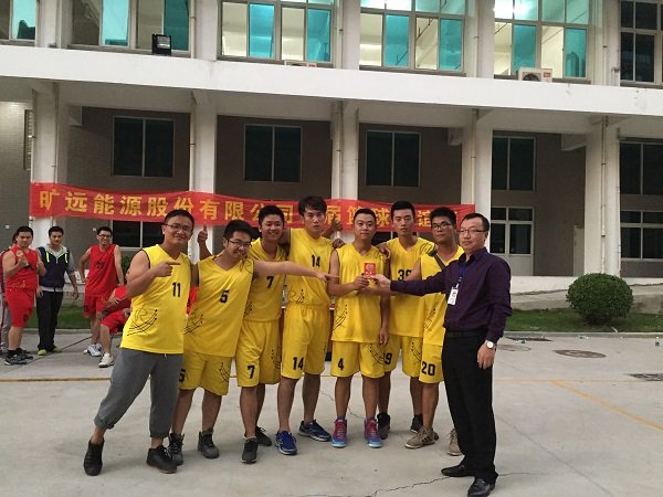 本次比賽共有4個隊伍參賽,分別為夢之隊、泰山隊、藍焰小分隊和紅領巾先鋒隊。自2015年8月17日起比賽火熱展開,在歷經近兩個月、6場積分賽的激烈角逐后,夢之隊與紅領巾先鋒隊在總決賽順利會師,于10月14日下午展開冠軍爭奪戰。賽場上氣氛活躍,雙方隊員本著“友誼第一,比賽第二”的原則,你追我趕,盡顯風采,觀眾掌聲陣陣,喝彩連連。經過一個小時的比拼,夢之隊憑借良好的團隊配合和戰術運用,以比分52:35的優勢戰勝了紅領巾先鋒隊,奪得了首屆籃球賽的冠軍。曠遠能源總經理葉春先生也特地到現場為隊員們加油打氣,并為冠亞軍球隊頒獎。