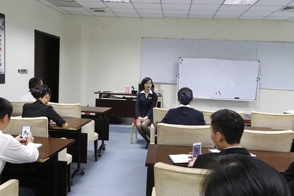 2015年10月20日,曠遠商學院酒店管理專業(yè)班10月份課程——《商務禮儀》在曠遠商學院培訓室如期開展,本次培訓主講師為酒店培訓經(jīng)理吳曉暉,酒店管理專業(yè)班全體學員悉數(shù)到場。