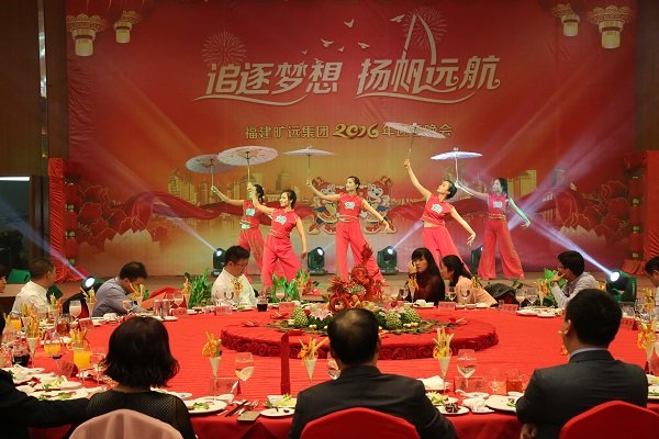 2016年1月18日,晚上七點整,曠遠集團“追逐夢想 揚帆遠航”2016年迎春晚會在曠遠錦江國際酒店錦繡廳、荔城廳隆重舉行,集團董事長王子林攜夫人,特邀嘉賓以及曠遠集團共計600余名員工齊聚一堂,喜迎新春佳節的到來。 晚會開始前,王子林董事長上臺發表祝酒辭。王董首先代表董事會及全體股東向全體曠遠人及其家屬致以新春的祝福,并向晚會期間堅守崗位的值班人員致以敬意。王董說,今年曠遠集團走進了第17個年頭,對于一路走來與集團共同并肩作戰的曠遠人,他表示由衷地感謝,并希望全體曠遠人再接再厲,齊心協力共筑曠遠輝煌的明天。 手執油紙傘的酒店前廳部美女們的舞蹈《煙花三月》拉開了晚會第一篇章“曠遠·追夢”的序幕,帶著我們一同暢游江南;緊接著,集團貿易事業部朱杰一曲《青花瓷》,為我們描繪出了一番詩情畫意;小品《到底該怨誰》將工作問題搬上了舞臺解決,再次提醒了我們團隊合作的重要性;由長沙房地產營銷團隊帶來的熱辣舞蹈《gentlemen的一分一秒》熱絡了晚會氣氛,現場一片沸騰;隨后的四首歌曲串燒,歌手們更是為我們演繹了經典曲目。晚會第二篇章“曠遠·揚帆”以具有莆田文化特色的莆仙戲《春草闖堂》為開篇,酒店洗衣房阿姨們的精彩表演贏得臺下陣陣掌聲;曠遠能源客服部的宮廷舞蹈《漢宮裳影》帶著我們穿越到漢朝,感受不一樣的文化;曠遠房地產同事們的一曲《朋友》道盡了友情的可貴,亦提醒我們珍惜攜手并肩的戰友;南豐萌萌噠同事們的舞蹈《感覺自己萌萌噠》為我們展現了青春活力與激情。晚會最后一個篇章“曠遠·遠航”,以長沙房地產王佳的薩克斯獨奏《春風》開篇,讓我們無不驚嘆集團的臥虎藏龍;曠遠能源小鮮肉們的舞蹈《uptown funk》將晚會推向了高潮,集團特邀嘉賓及高管紛紛上臺學習舞蹈動作,優美的舞姿贏得臺下掌聲不斷;宏盛市政一曲《驚鴻舞》再次帶領我們感受宮廷舞蹈的魅力;曠遠能源仙游分公司陳宗彬的獨唱《男人哭吧不是罪》將歌曲演繹得淋漓盡致;上杭客家妹們帶來的舞蹈《我是客家妹》為我們呈現了上杭特有的風俗舞蹈;隨著一曲大合唱《難忘今宵》晚會進入了尾聲。晚會現場除了節目表演,還穿插了互動游戲和抽獎環節,晚會高潮處,集團董事長王子林、集團特邀嘉賓、部分高管更是上臺獻唱,氣氛融洽且熱絡。 晚會最后,集團高管與部分表演人員上臺合影留念,至此,曠遠集團2016年迎春晚會圓滿落下了帷幕。 圖為2016年迎春晚會董事長王子林上臺致祝酒辭 圖為2016年迎春晚會節目表演現場 圖為2016年迎春晚會節目表演現場 圖為2016年迎春晚會節目表演現場 圖為2016年迎春晚會節目表演現場 圖為2016年迎春晚會節目表演現場 圖為2016年迎春晚會節目表演現場 圖為2016年迎春晚會節目表演現場 圖為2016年迎春晚會節目表演現場 圖為2016年迎春晚會節目表演現場 圖為2016年迎春晚會節目表演現場 圖為2016年迎春晚會節目表演現場 圖為2016年迎春晚會節目表演現場 圖為2016年迎春晚會節目表演現場 圖為2016年迎春晚會節目表演現場 圖為2016年迎春晚會節目表演現場 圖為2016年迎春晚會節目表演現場 圖為2016年迎春晚會節目表演現場 圖為2016年迎春晚會節目表演現場 圖為2016年迎春晚會抽獎環節