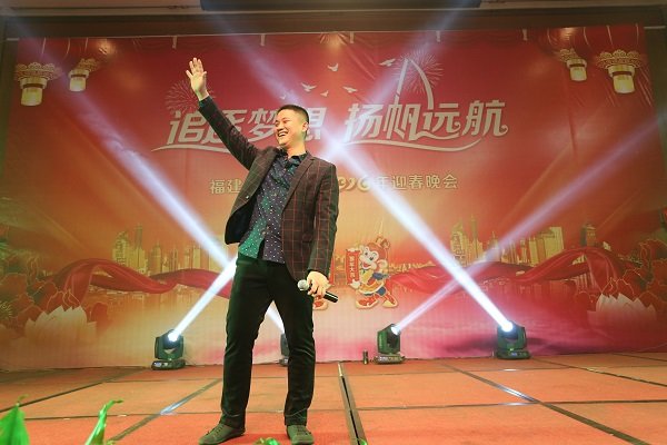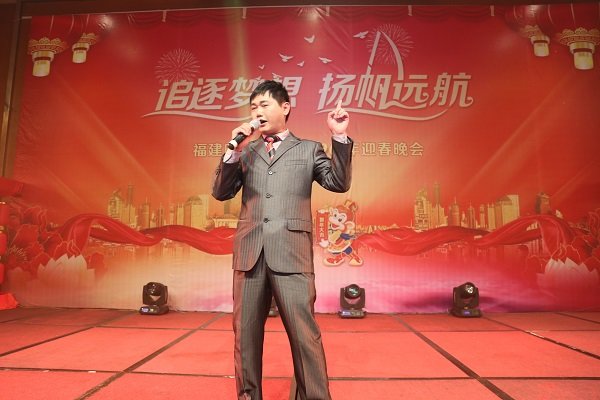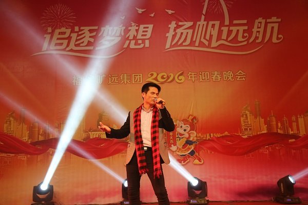 圖為2016年迎春晚會董事長王子林上臺獻唱