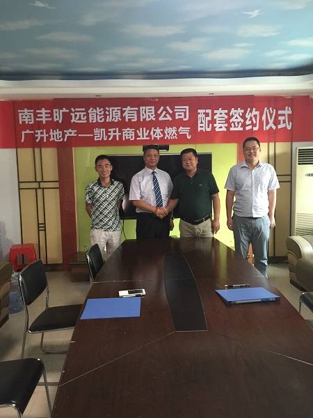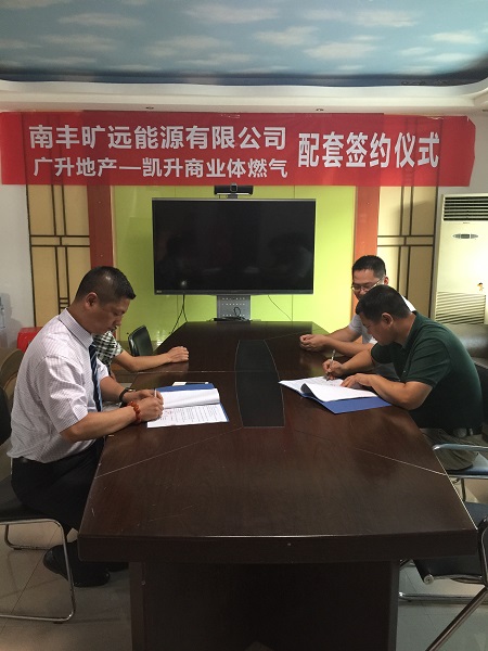 2016年6月13日下午17點,南豐曠遠能源有限公司總經理楊永剛、副總經理柯軍,廣升地產——凱升商業管理有限公司總經理鄭人碩等一行于南豐曠遠能源會議室進行了首個商業綜合體燃氣配套項目簽約儀式。在交流中,雙方一致表示,對未來的合作充滿信心。