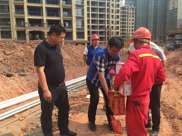 在施工現場,集團領導向工作人員詳細了解施工進度、存在的困難和問題,并把防暑降溫物品送至員工手中,對兢兢業業戰斗在高溫酷暑環境下的一線員工進行了誠摯的慰問,囑咐大家做好防暑工作,并叮囑他們應合理安排施工時間,注重勞逸結合,在保證安全的前提下完成施工任務。