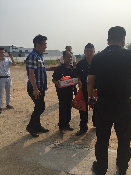 立秋過后,南豐的高溫天氣持續不減,堅守在各個崗位上的一線員工牽掛著集團領導的心,2016年8月25日,集團信息技術中心總監曾智偉在南豐曠遠能源總經理楊永剛及行政人事部負責人等的陪同下,帶著飲料、涼茶、西瓜、藿香正氣水等防暑降溫物品,先后至臨時場站、未來城施工現場、客服部、辦公樓等地,對各部門員工進行了親切的慰問。在現場,曾總監與員工親切交流,代表集團對他們在高溫酷暑下辛勤的工作表示感謝,并為他們帶去了集團領導的關心,給烈日下的施工人員送來了關愛和清涼。