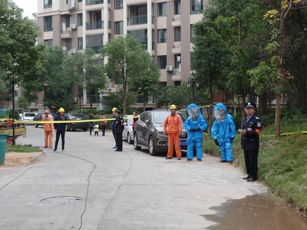 演練開始,各小組就位。在接到居民報警電話后,總指揮即刻啟動搶險預案,隨后檢測組立即對泄漏點進行燃氣濃度檢測,劃定警戒范圍;警戒小組拉上警戒帶隔離疏散人群;同時消防滅火車趕到現場,并拉響警報;巡線員接到指令立即關閉管道上下游閥門、泄漏點樓棟調壓箱;消防員持消防水槍搶占有利位置噴灑水霧稀釋燃氣;在泄漏燃氣受到控制后,軸流風機啟動進一步吹散降低現場燃氣濃度,檢測人員反復檢測燃氣濃度達到1%安全范圍值;搶險施工班組進場對受損管道進行修復、檢驗。最后,巡線組按指令恢復小區供氣,檢測人員再次對周邊環境進行檢測,確認正常,解除現場警戒。隨后,建設局執法大隊曾淋輝大隊長對演練發表總結點評,并予以肯定。