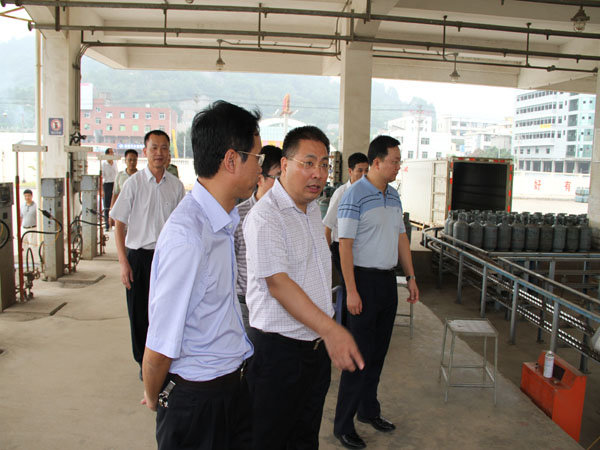 在我司相關領導和工作人員的陪同下,陳志強副市長一行視察了我司生產部氣源廠,認真檢查了瓶裝氣的充裝流水線,對我司規范的操作流程和整潔的工作環境表示滿意。陳副市長邊走邊看,提醒我司陪同人員:要一如既往地做好燃氣監管和安全防范工作,一定要確保供氣安全,讓廣大市民在快樂祥和中度過“十一”長假。