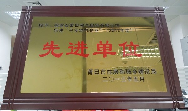 莆田燃氣獲2012年度創建“平安燃氣企業”先進單位