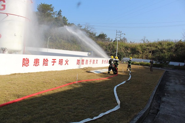 為提高儲(chǔ)配站火災(zāi)事故的應(yīng)急處置能力,確保發(fā)生事故時(shí)能夠及時(shí)有效應(yīng)對(duì),2月14日上午,上杭縣消防大隊(duì)深入福建上杭縣中陽(yáng)管道天然氣有限公司開展技能培訓(xùn)工作,并在培訓(xùn)結(jié)束后于儲(chǔ)備站進(jìn)行一次滅火實(shí)戰(zhàn)聯(lián)合演練。
