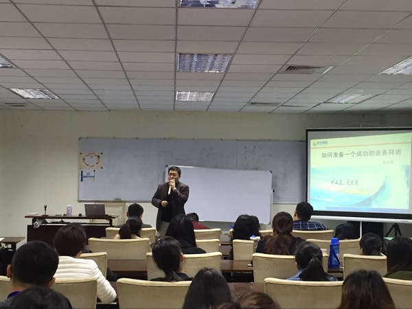 隨后,市場開發(fā)中心總經(jīng)理李大勇以分享經(jīng)驗為切入點,開始了當(dāng)天的課程,課程共分兩大模塊:一、如何拜訪客戶;二、實用商務(wù)禮儀分享。