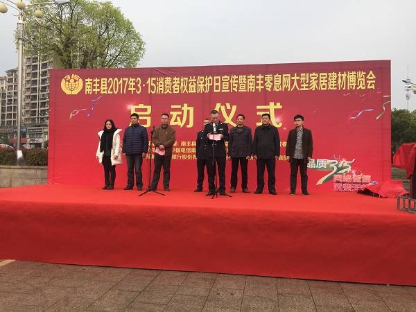 3月15日上午,南豐縣2017年“3.15消費者權益者保護日”宣傳活動暨南豐零息網大型家居建材博覽會啟動儀式在桔都廣場順利舉辦。南豐縣委宣傳部副部長羅健、縣市場和質量監督管理局局長胡義華、縣消費者協會會長、副會長、各常務理事單位及主要負責人出席啟動儀式并發表講話,南豐縣煙草公司、中國移動通信、中國電信集團、中國郵政儲蓄銀行及南豐曠遠能源等多家單位參加該活動。