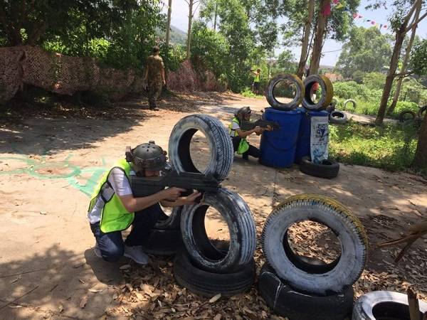 隨后,第三個項目——精彩刺激的真人CS野戰正式開始,隊伍分為紅、藍兩方,采用輪流攻守PK賽制,狙擊手潛伏、敢死隊沖鋒上陣,隊員們充分體驗在戰場“殺敵”的快感,也體驗到了勝利后的喜悅,磨練了團隊戰勝困難的毅力。