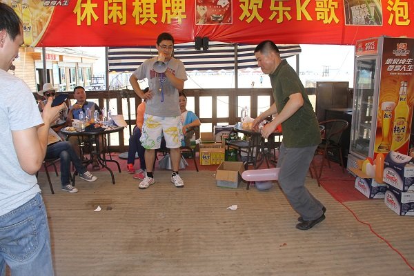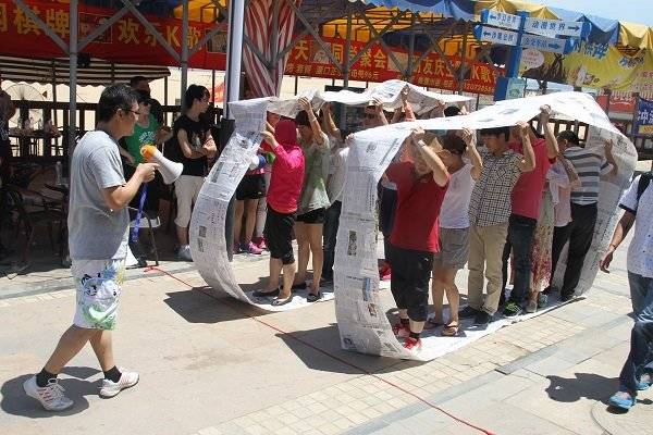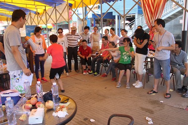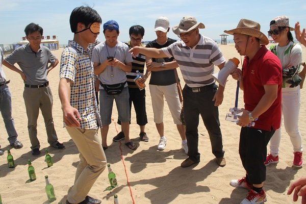 雖烈日炎炎,卻難抵參與者們高漲的熱情。到達目的地后,以抽簽的方式分成了沙漠之鷹隊、颶風隊、烈日隊及野狼隊四個小組進行團隊拓展。